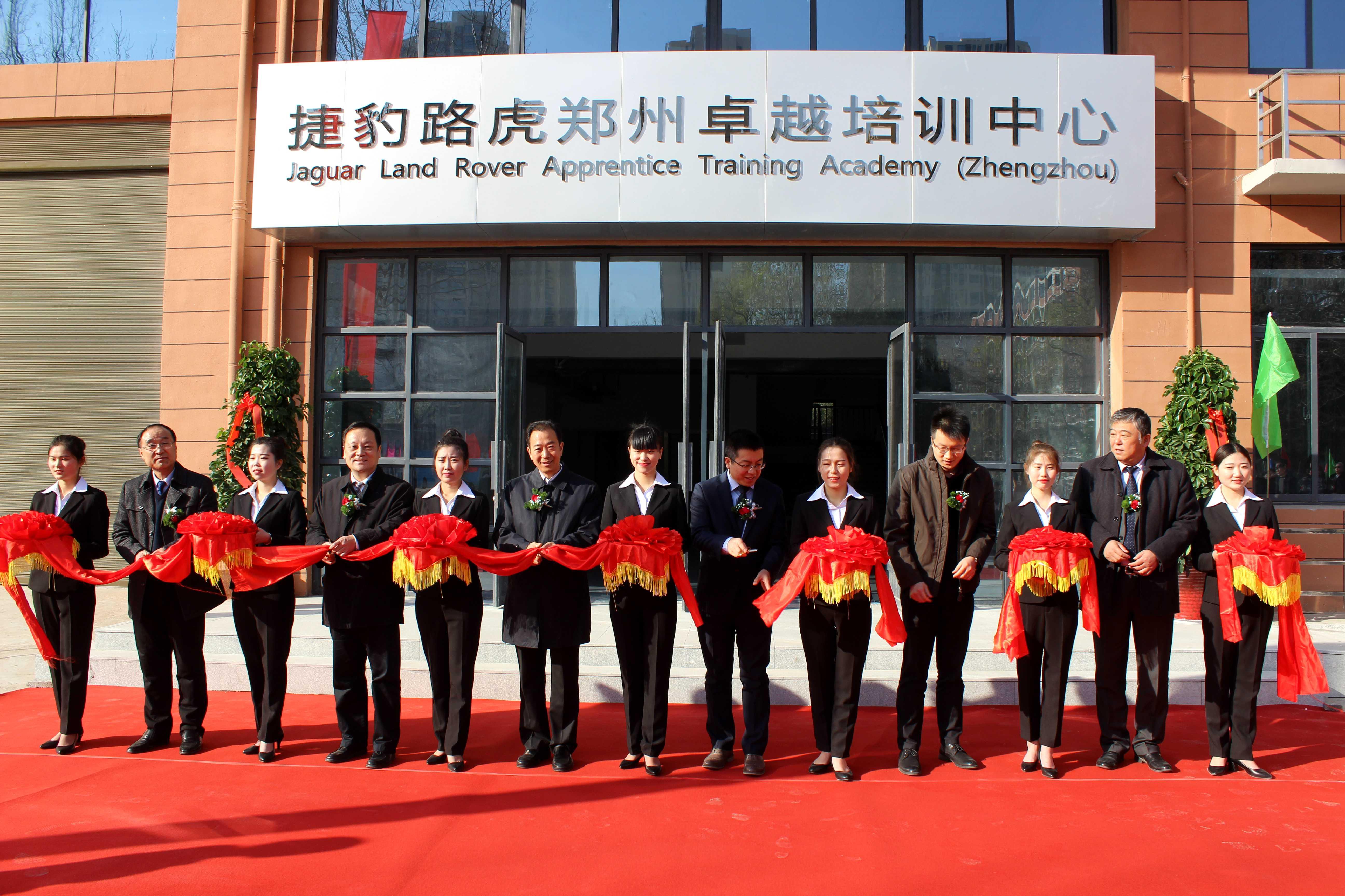 隨后領(lǐng)導(dǎo)嘉賓來到汽車學(xué)院實(shí)訓(xùn)大樓為新落成的捷豹路虎鄭州卓越培訓(xùn)中心進(jìn)行剪彩,并一同參觀實(shí)訓(xùn)中心。
