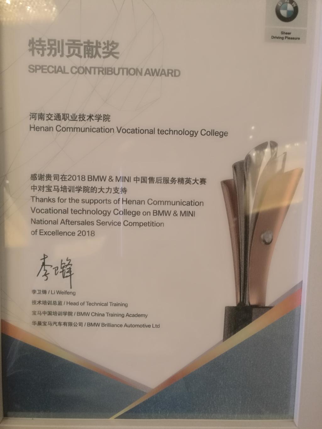 3月20-21日,寶馬培訓(xùn)學(xué)院在上海召開(kāi)了年度技術(shù)培訓(xùn)師大會(huì)。會(huì)議對(duì)2018年度寶馬技術(shù)培訓(xùn)工作進(jìn)行了總結(jié),對(duì)表現(xiàn)優(yōu)秀的合作院校和技術(shù)培訓(xùn)老師進(jìn)行了表彰。我院獲得特別貢獻(xiàn)獎(jiǎng),寶馬BEST項(xiàng)目團(tuán)隊(duì)成員馮順利、張紅和徐增勇三位老師榮獲BMW技術(shù)培訓(xùn)師五年長(zhǎng)期服務(wù)獎(jiǎng),賈廣輝老師榮獲技術(shù)培訓(xùn)最佳經(jīng)銷(xiāo)商學(xué)員滿意度獎(jiǎng)和最佳課程優(yōu)化方案獎(jiǎng)。