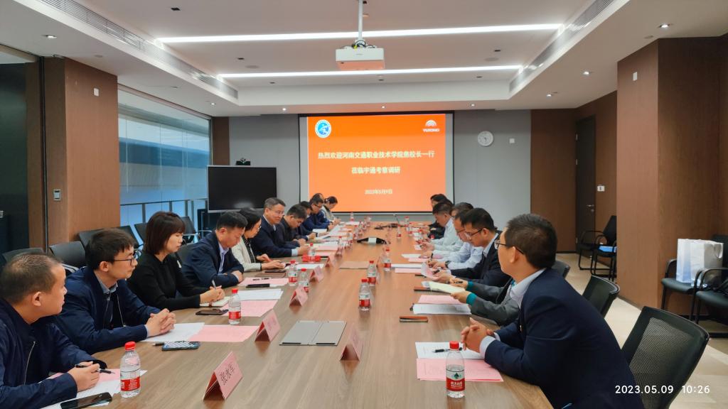 5月9日上午,校長(zhǎng)焦宏濤帶隊(duì)深入鄭州宇通集團(tuán)有限公司考察調(diào)研。宇通集團(tuán)用工和技能培訓(xùn)負(fù)責(zé)人李峰、教育公司總經(jīng)理韓德利等陪同參觀交流。