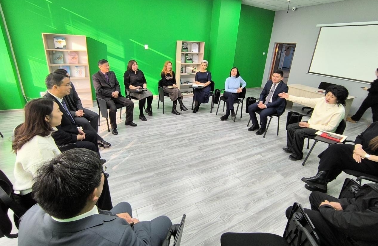 與卡拉干達(dá)經(jīng)濟大學(xué)副校長納基波娃·古爾米拉·埃爾梅科芙娜及相關(guān)負(fù)責(zé)人座談交流