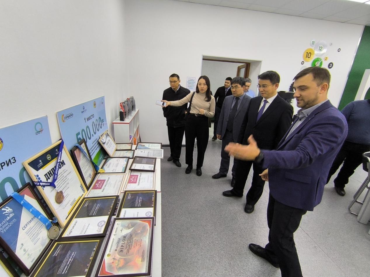 在卡拉干達(dá)高等技術(shù)學(xué)院副校長科瓦廖夫·亞歷山大·亞歷山德羅維奇陪同下參觀學(xué)校