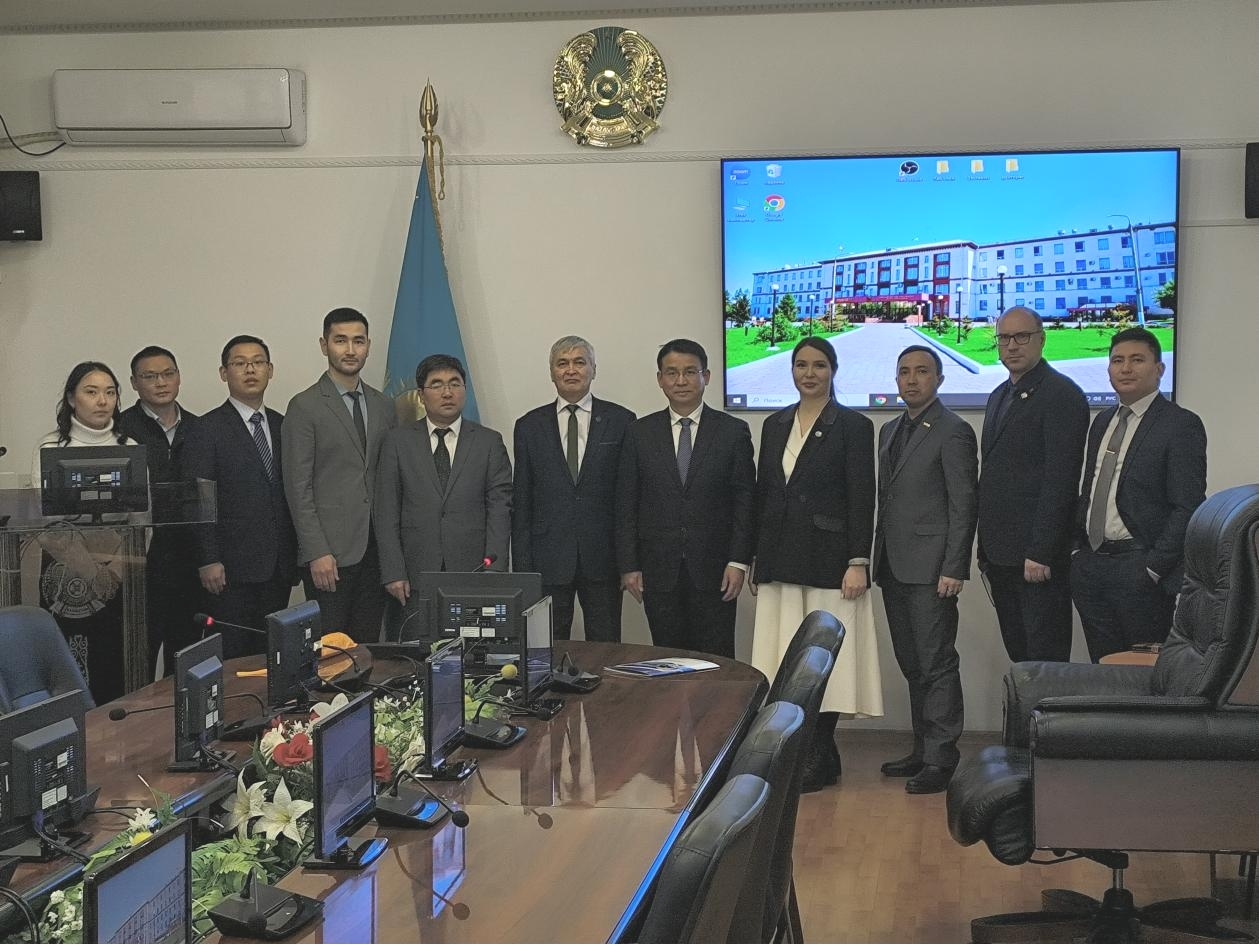 與卡拉干達(dá)布克托夫大學(xué)校長杜拉特別科夫·努爾蘭·奧林巴薩羅維奇及相關(guān)人員座談交流