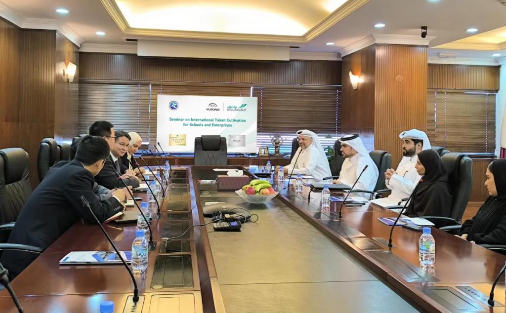 訪問(wèn)期間,焦宏濤一行走訪了卡塔爾國(guó)家運(yùn)輸公司(Mowasalat),與公司首席運(yùn)營(yíng)官Ahmad Hassan A M AL-Obaidly、首席行政官Ahmed AL Muftah及人力資源、財(cái)務(wù)管理、附屬學(xué)校等相關(guān)負(fù)責(zé)人進(jìn)行座談。雙方圍繞新能源客車運(yùn)營(yíng)與管理技術(shù)技能人才培養(yǎng),就下一步加強(qiáng)卡塔爾“愚公工坊”“新能源汽車技術(shù)技能與人文交流人才卡塔爾訓(xùn)練基地”建設(shè),以及卡方員工赴中學(xué)習(xí)、組織中方教師赴卡授課等進(jìn)行深入交流,并一致表示要進(jìn)一步加強(qiáng)溝通對(duì)接,積極推動(dòng),盡快落實(shí)。