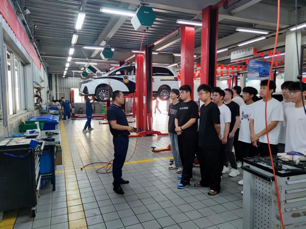 在售后維修車間,企業(yè)技術(shù)總監(jiān)王工系統(tǒng)講解了別克品牌售后服務(wù)運(yùn)作體系。學(xué)生分組觀摩了車輛保養(yǎng)全流程,重點(diǎn)學(xué)習(xí)電子診斷設(shè)備操作規(guī)范與故障分析邏輯,并在企業(yè)導(dǎo)師指導(dǎo)下完成基礎(chǔ)檢測(cè)設(shè)備實(shí)操。技術(shù)研討環(huán)節(jié),師生與企業(yè)技師就新能源汽車診斷技術(shù)難點(diǎn)展開深度交流。