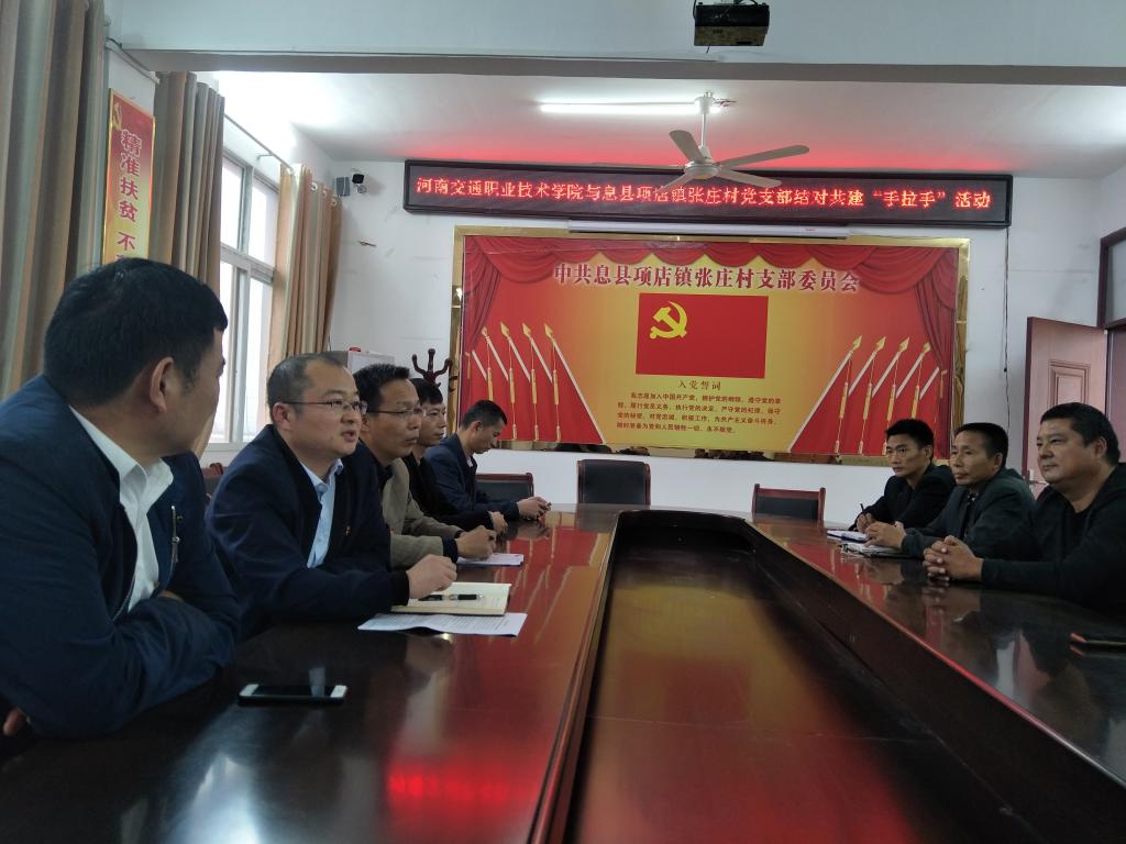 為貫徹落實《河南省交通運輸廳“不忘初心、牢記使命”主題教育實施方案》的要求,受學(xué)院黨委和汽車學(xué)院黨總支的委派,汽車學(xué)院教工第二黨支部于10月22日赴息縣項店張莊村開展黨支部共建“手拉手”活動。