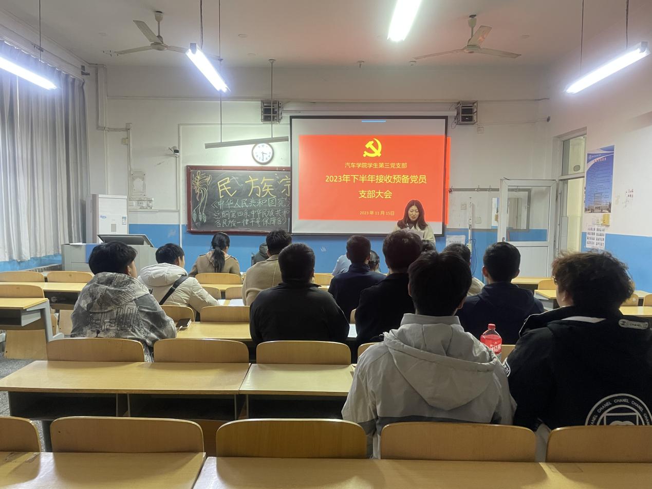 11月15日,汽車學(xué)院學(xué)生第三黨支部在教學(xué)樓A105召開接收預(yù)備黨員大會,汽車學(xué)院學(xué)生第三黨支部全體黨員及本次發(fā)展對象參加會議。會議由學(xué)生第三黨支部書記李靜主持。