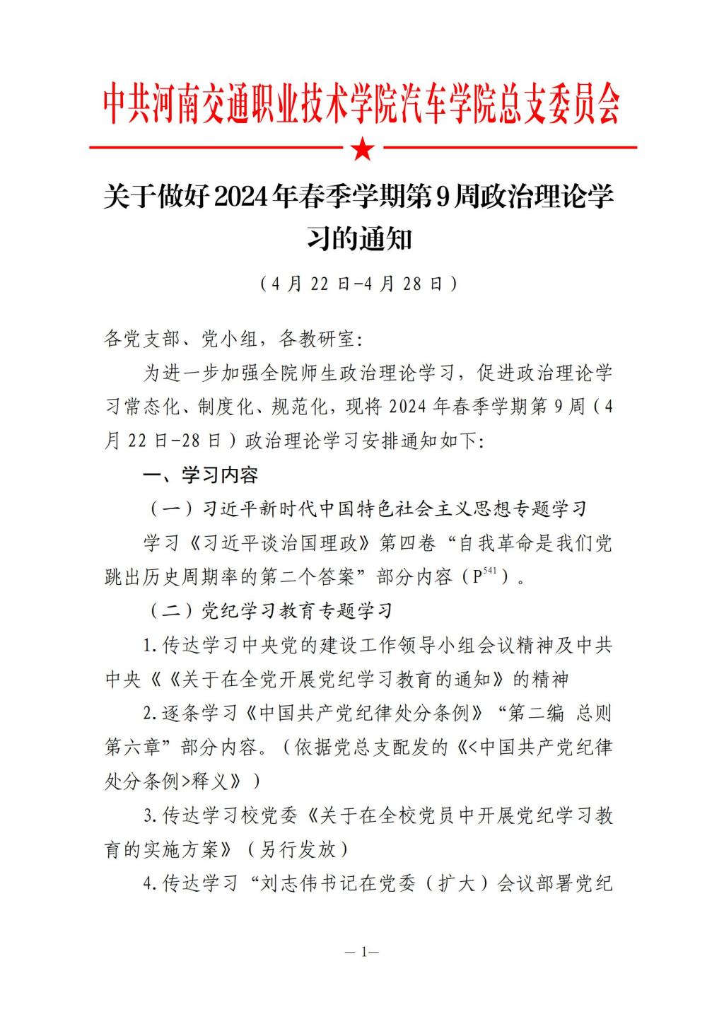 2024年春季學(xué)期第9周政治學(xué)習(xí)安排