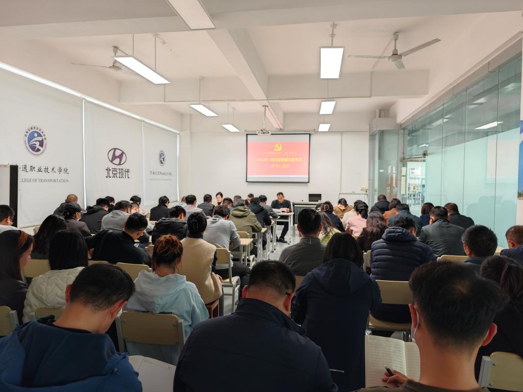 為深入推進(jìn)黨建與業(yè)務(wù)工作深度融合,以高質(zhì)量黨建引領(lǐng)新能源汽車專業(yè)群高質(zhì)量發(fā)展,11月12日下午,汽車學(xué)院教工第一、第二黨支部在航海路校區(qū)北京現(xiàn)代實(shí)訓(xùn)基地303教室聯(lián)合舉辦主題黨日(擴(kuò)大)會(huì)議。會(huì)議由教工第一黨支部書記張俊停主持,支部黨員教師及所轄教研室非黨員教師共同參加學(xué)習(xí)。