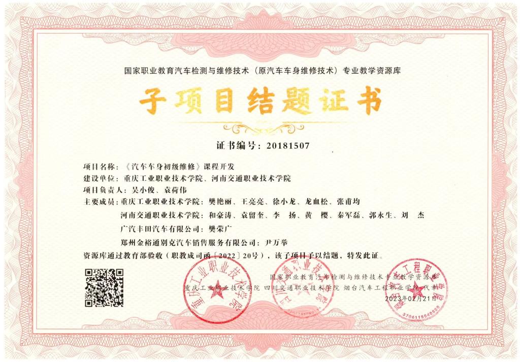 2019年,我校作為參建單位,加入了教育部汽車(chē)檢測(cè)與維修技術(shù)專(zhuān)業(yè)教學(xué)資源庫(kù)的申報(bào)與建設(shè)。該資源庫(kù)是由重慶工業(yè)職業(yè)技術(shù)學(xué)院、四川交通職業(yè)技術(shù)學(xué)院、煙臺(tái)汽車(chē)工程職業(yè)學(xué)院聯(lián)合主持,全國(guó)16所優(yōu)質(zhì)院校和全國(guó)交通運(yùn)輸職業(yè)教育教學(xué)指導(dǎo)委員會(huì)汽車(chē)技術(shù)類(lèi)專(zhuān)業(yè)教學(xué)指導(dǎo)委員會(huì)、全國(guó)機(jī)械行業(yè)職業(yè)教育教學(xué)指導(dǎo)委員會(huì)、汽車(chē)工程學(xué)會(huì)汽車(chē)應(yīng)用與服務(wù)分會(huì)、中國(guó)汽車(chē)維修行業(yè)協(xié)會(huì)及多家知名行企組織共同建設(shè)。我校汽車(chē)學(xué)院教師主持了子項(xiàng)目建設(shè)任務(wù)與資源庫(kù)的應(yīng)用推廣。2022年10月,該資源庫(kù)順利通過(guò)教育部專(zhuān)家驗(yàn)收。