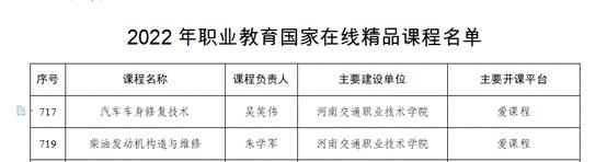 1月12日,教育部公布了2022年職業(yè)教育國家在線精品課程名單,我院《柴油發(fā)動機(jī)構(gòu)造與維修》《汽車維護(hù)與保養(yǎng)》2門課程成功入選,成為我院首批國家級精品課程。