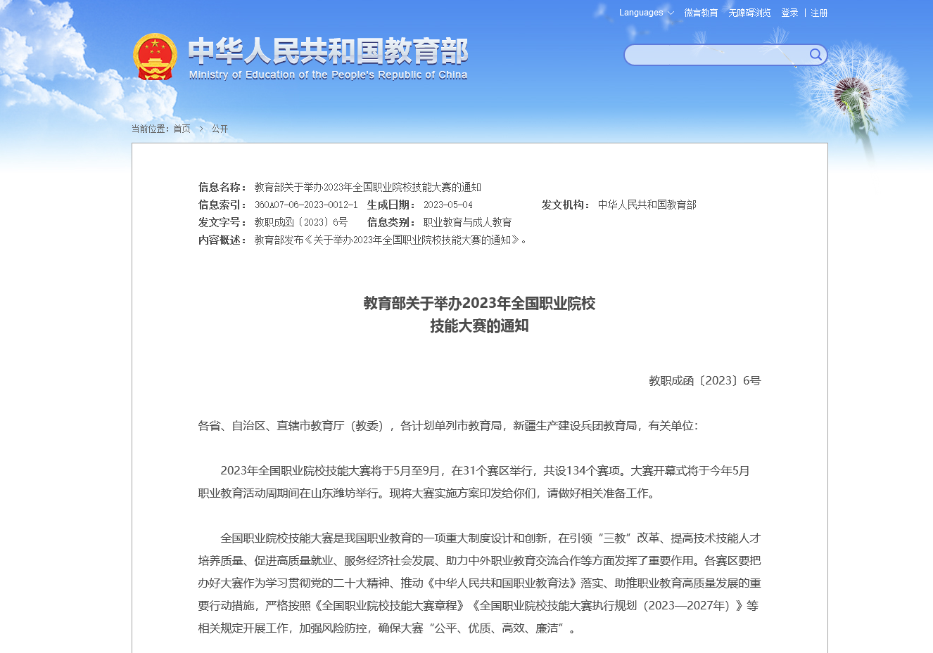 5月4日,教育部發(fā)布《關(guān)于舉辦2023年全國職業(yè)院校技能大賽的通知》,公布了2023、2024年全國職業(yè)院校技能大賽賽項名單、賽區(qū)及承辦院校,我校獲得2023年和2024年汽車營銷賽項承辦權(quán),這也是學校首次獲得全國一類賽事承辦資格。