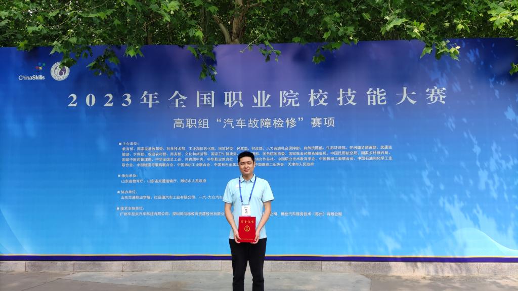5月18日-5月19日,2023年全國職業(yè)院校技能大賽高職教師組“汽車故障檢修”賽項在山東濰坊成功舉辦。我校汽車學院教師王培經過兩天的激烈角逐,從來自全國的60支代表隊中脫穎而出,喜獲全國二等獎的優(yōu)異成績。
