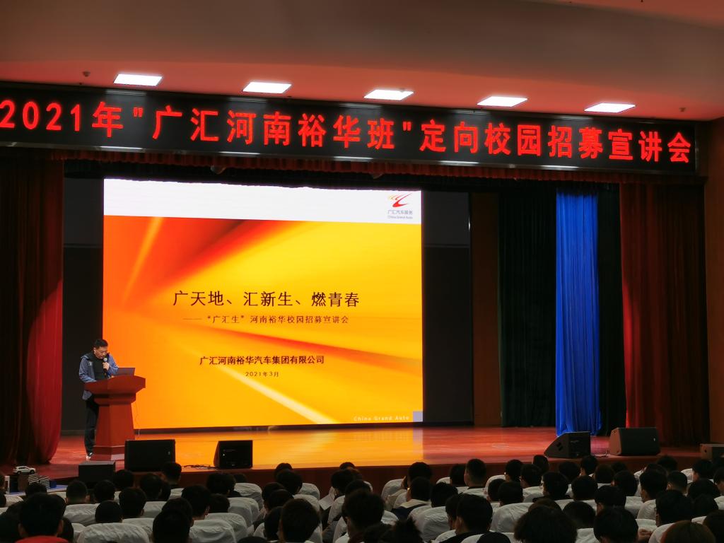 本次校園招募宣講為我院2021年廣匯汽車校企合作拉開帷幕。接下來將通過報(bào)名、面試、組班等環(huán)節(jié),在廣匯汽車獨(dú)具特色的人才培養(yǎng)與發(fā)展機(jī)制下,組建 “多品牌校企合作項(xiàng)目+多品牌經(jīng)銷商”的新型訂單班。“廣匯裕華班”將以我院“企業(yè)冠名團(tuán)隊(duì)負(fù)責(zé)制”人才培養(yǎng)模式為基礎(chǔ),進(jìn)一步優(yōu)化資源利用,加深產(chǎn)教融合,擴(kuò)大綜合效益,實(shí)現(xiàn)“學(xué)生、職業(yè)院校、主機(jī)廠、4S店、經(jīng)銷商集團(tuán)”五方共贏的校企合作運(yùn)行新模式,為企業(yè)培養(yǎng)出以“想做事、敢做事、會(huì)做事、做成事”為訴求、具有“工匠精神”的優(yōu)秀學(xué)員。