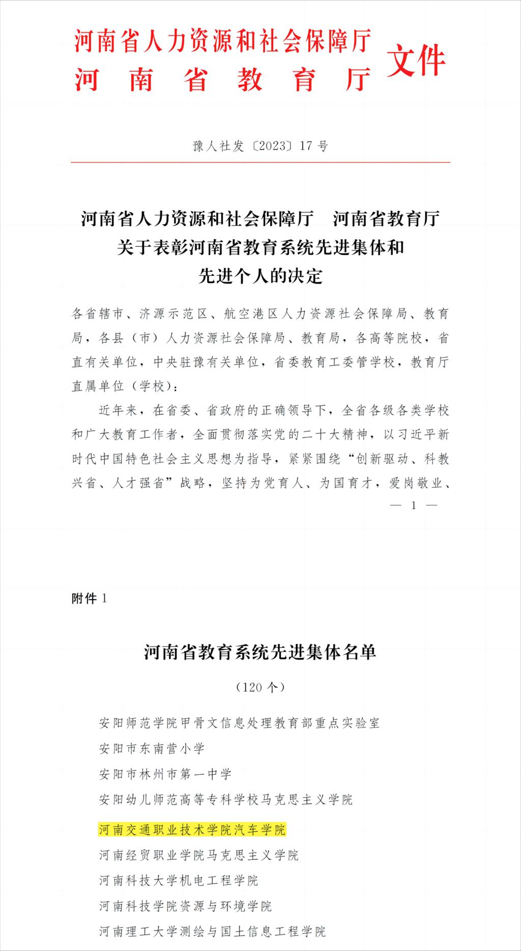近日,河南省人力資源和社會(huì)保障廳、河南省教育廳印發(fā)《關(guān)于表彰河南省教育系統(tǒng)先進(jìn)集體和先進(jìn)個(gè)人的決定》(豫人社發(fā)〔2023〕17號(hào)),對(duì)一批在全省教育事業(yè)改革和發(fā)展中取得顯著成績的先進(jìn)集體和先進(jìn)個(gè)人進(jìn)行了表彰,我校汽車學(xué)院被授予“河南省教育系統(tǒng)先進(jìn)集體”榮譽(yù)稱號(hào)。