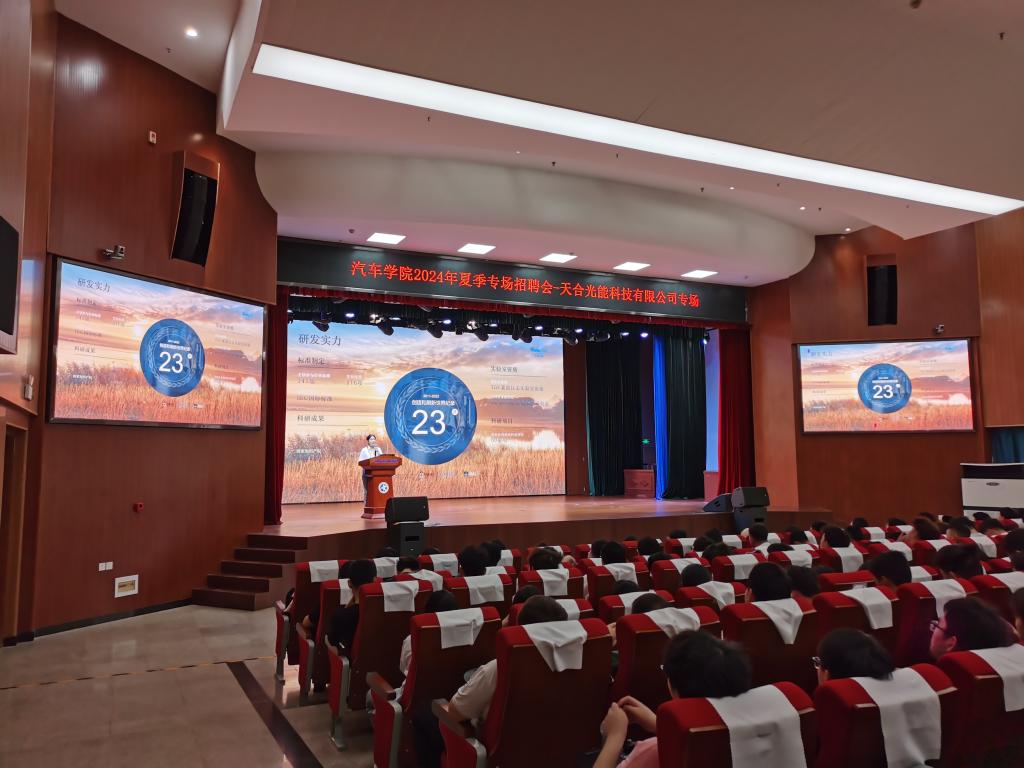 5月15日,汽車學(xué)院邀請?zhí)旌瞎饽芸萍加邢薰荆ㄒ韵潞喎Q天合光能)到校舉辦“2024年夏季專場招聘會”優(yōu)質(zhì)企業(yè)宣講活動。天合光能人力資源管理中心劉夢姚作為企業(yè)主講人出席活動,300余名學(xué)生參加了本次企業(yè)宣講。