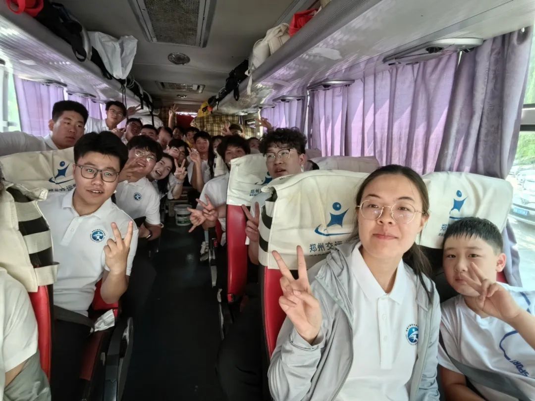 一切準備就緒后,同學們和老師在車上滿懷激動和緊張的情緒準備出發(fā)。