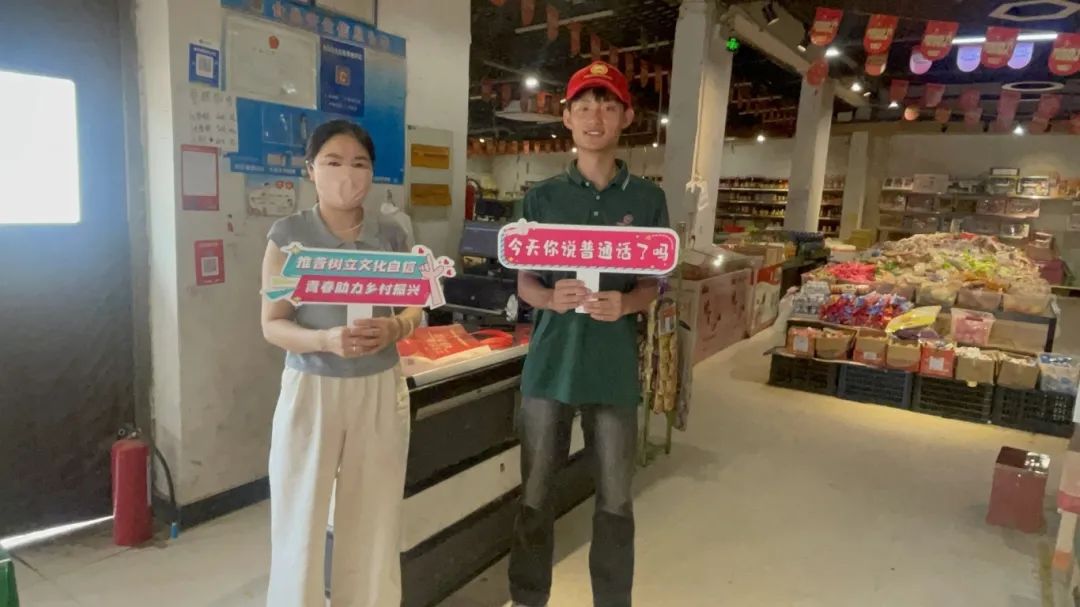 除了校園,我們還走進村民家中、超市、街頭,與村民們親切交流。在與村民的溝通中,我們發(fā)現(xiàn),雖然很多村民日常習(xí)慣說方言,但他們對學(xué)習(xí)普通話充滿渴望。我們針對村民的實際需求,從日常問候語、與外人交流等方面入手,耐心地教他們發(fā)音。