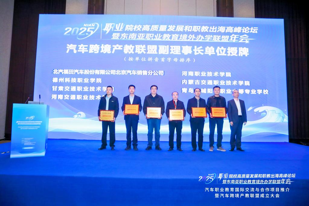 11月1日,2025職業(yè)院校高質(zhì)量發(fā)展和職教出海高峰論壇暨汽車跨境產(chǎn)教聯(lián)盟成立大會在濟南召開。會議由教育部職業(yè)院校信息化教學指導委員會、全國機械職業(yè)教育教學指導委員會聯(lián)合指導,山東省職業(yè)技術(shù)教育學會主辦,學校憑借在汽車職業(yè)教育領(lǐng)域的深厚積淀與國際化辦學成效,成功當選汽車跨境產(chǎn)教聯(lián)盟副理事長單位。