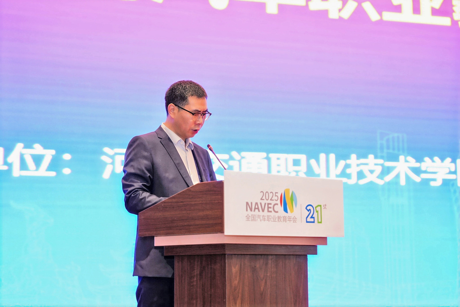 徐紅玉在分論壇致辭中介紹了學(xué)校70余年辦學(xué)積淀與國家“雙高計(jì)劃”建設(shè)成效,重點(diǎn)交流了學(xué)校在汽車職教垂類大模型研發(fā)、AI教學(xué)資源庫構(gòu)建、數(shù)字孿生實(shí)訓(xùn)中心籌建等方面的探索實(shí)踐。他表示,人工智能正深刻重塑汽車產(chǎn)業(yè)技術(shù)體系與人才需求,成為推動(dòng)職業(yè)教育高質(zhì)量發(fā)展的關(guān)鍵力量,期待通過本次論壇凝聚智慧,共同探索AI賦能汽車職業(yè)教育的新路徑,并發(fā)出共筑產(chǎn)教融合生態(tài)圈、共推課堂革命、共建協(xié)同發(fā)展共同體三點(diǎn)倡議,為AI賦能汽車職教發(fā)展凝聚共識(shí)。