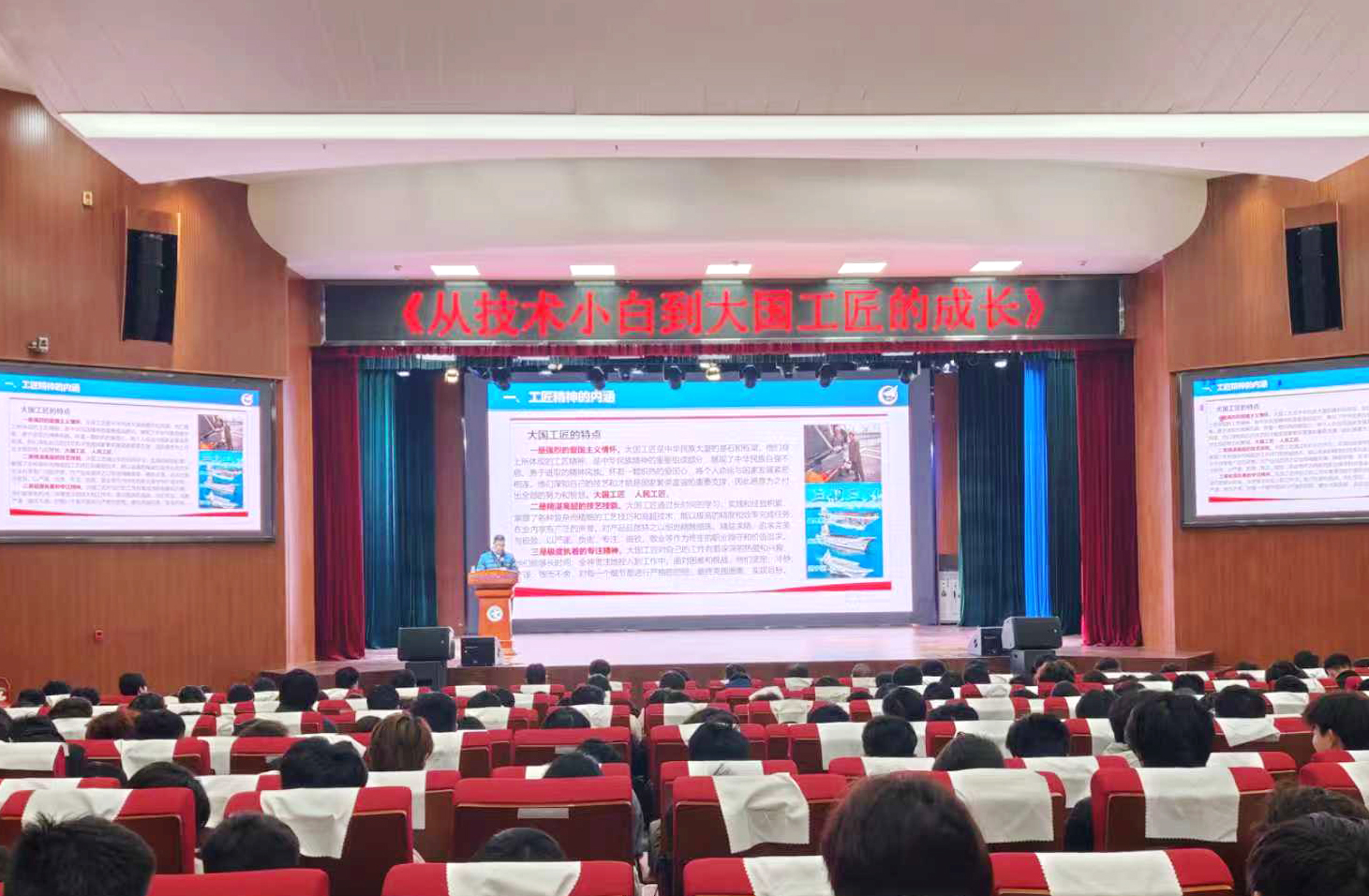 為大力弘揚工匠精神,引領(lǐng)青年學(xué)子走技能報國之路,10月22日,汽車學(xué)院“新征程”系列講座——《從技術(shù)小白到大國工匠的成長》在航海路校區(qū)藝術(shù)中心開講。本次講座特別邀請到全國勞動模范、全國“五一勞動獎?wù)隆鲍@得者、“大國工匠”、全國技術(shù)能手,中國航空工業(yè)集團高級技師牛雪平先生擔任主講嘉賓,汽車學(xué)院300余名師生現(xiàn)場聆聽。