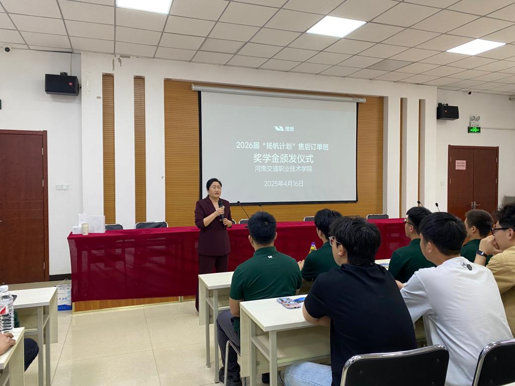宣講會上,各企業(yè)代表詳細(xì)介紹了公司概況、業(yè)務(wù)領(lǐng)域、人才需求和職業(yè)發(fā)展路徑等內(nèi)容。蘇州立訊技術(shù)有限公司重點分享了在智能制造、電子信息領(lǐng)域的前沿技術(shù)成果,并針對不同崗位要求進(jìn)行了說明;奇瑞捷豹路虎全面展示了汽車制造流程,深入講解了汽車設(shè)計、生產(chǎn)工藝等專業(yè)知識,同時解讀了市場營銷崗位需求情況;理想汽車為2023級理想訂單班學(xué)生頒發(fā)獎學(xué)金,鼓勵同學(xué)們積極投遞簡歷,講解了組建24級訂單班課程內(nèi)容,培養(yǎng)方式等方面的情況,現(xiàn)場開展了訂單班選拔面試;海南華鐵詳細(xì)介紹了企業(yè)情況,就招聘崗位需求、薪資待遇及晉升渠道等學(xué)生關(guān)心的問題作具體說明。