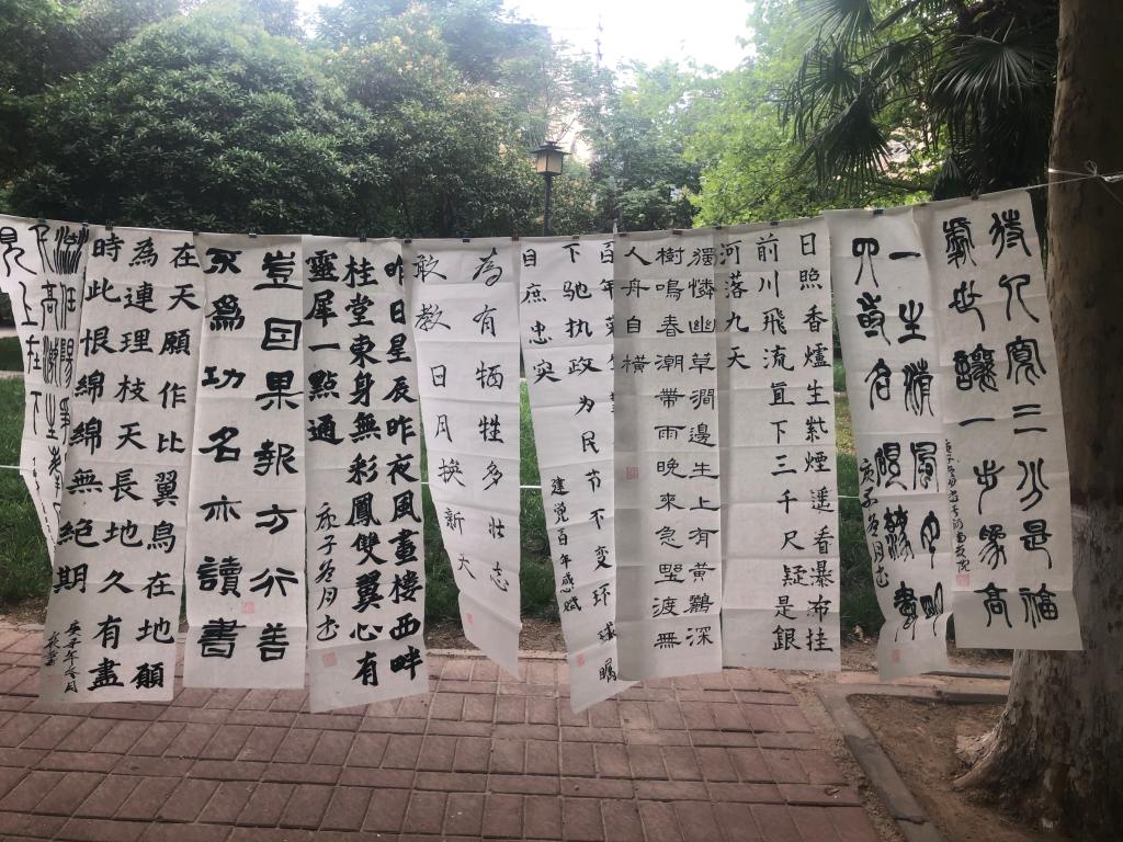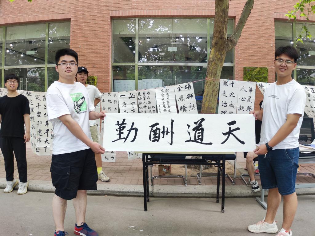 為慶祝中國共產(chǎn)黨成立100周年,謳歌黨的光輝歷程和豐功偉績,進一步弘揚以愛國主義為核心的民族精神,弘揚中華傳統(tǒng)文化與藝術(shù),6月21日汽車學(xué)院書法協(xié)會在林蔭大道舉辦“翰墨頌黨恩,永遠跟黨走”為主題的書法展覽。