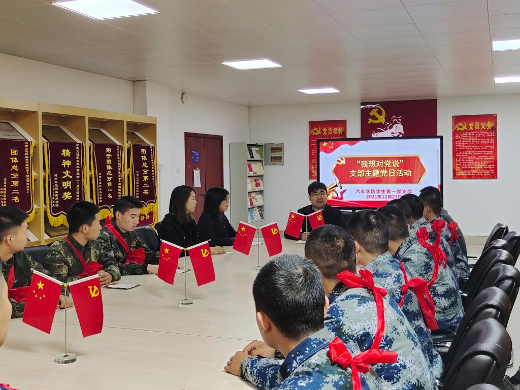 為進一步激勵支部黨員學黨史、感黨恩、強黨性、跟黨走的理想信念,汽車學院學生第一黨支部12月21日開展了主題突出、飽俱儀式感的“我想對黨說”支部主題黨日活動,汽車學院黨總支書記軒照振、汽車學院學生第一黨支部書記胡訓華以及支部全體黨員參加了此次活動,會議由胡訓華同志主持。