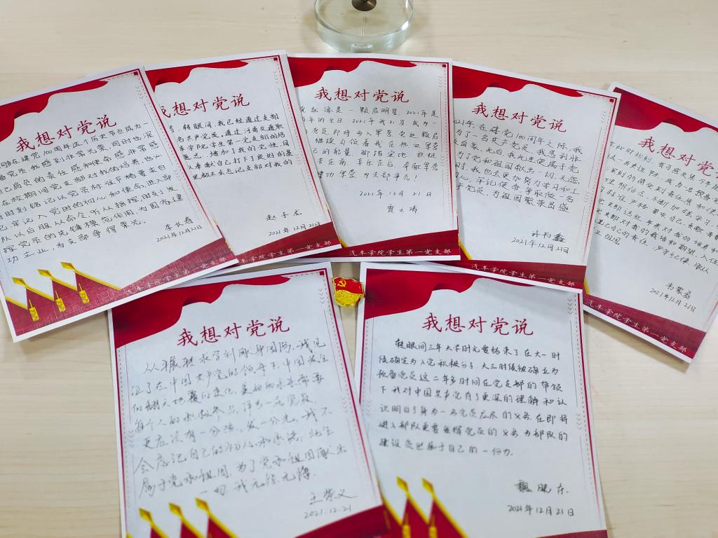 此次主題黨日活動以“我想對黨說”為主題,支部為每一位即將奔赴部隊的2019級士官生預備黨員準備了“我想對黨說” 專屬活動卡片,支部黨員通過“我手寫我心”的形式,對黨衷心告白。在“我手寫我心,下筆動真情”的過程中,士官生黨員們或回憶入黨初心,或感恩黨和支部的培養(yǎng),進一步凸顯了黨史學習教育成效,讓此次主題黨日活動飽含溫度和情感。