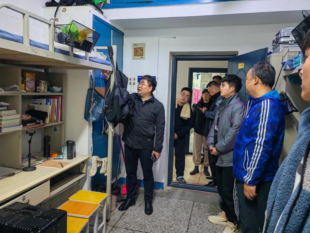 軒照振一行對(duì)宿舍安全、內(nèi)務(wù)衛(wèi)生等方面進(jìn)行了細(xì)致檢查,重點(diǎn)對(duì)使用違規(guī)電器、私拉亂接插線板、未及時(shí)關(guān)閉電源等用電安全隱患逐項(xiàng)排查,對(duì)存在的問題現(xiàn)場(chǎng)提出整改意見,要求限時(shí)整改到位,同時(shí)詳細(xì)詢問學(xué)生的學(xué)習(xí)、生活情況,了解思想動(dòng)態(tài),解決實(shí)際問題,并對(duì)學(xué)生開展安全教育,增強(qiáng)安全風(fēng)險(xiǎn)意識(shí)。