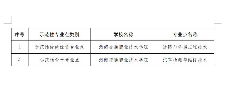 近日,河南省教育廳發(fā)布了《關于公布2023 年河南省職業(yè)教育示范性專業(yè)點立項建設項目名單的通知》(教職成〔2023〕131號),我校道路與橋梁工程技術、汽車檢測與維修技術兩個專業(yè)分別入選示范性傳統(tǒng)優(yōu)勢專業(yè)點、示范性骨干專業(yè)點。